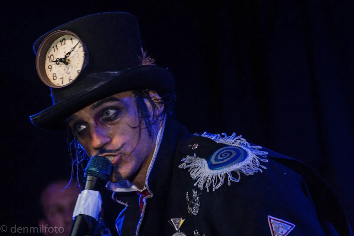 is a musical entity currently based in Los Angeles, California, but could more likely be described as coming from another planet, somewhere out of space and time, or at the very least, as a cast of characters out of a Tim Burton movie. This juggernaut of delightfully poetic, magically delicious, steam-powered, churning, spasedelic, carnival rock opera pirates deftly deliver an assortment of sonic offerings ranging from high energy, barn-burning, roller coaster rides, to whimsically waltzing, laid back strolls through the cosmic fields of spiraling musical and lyrical diatribes . If you can imagine that Danny Elfman went on a space odyssey with David Bowie, that had the Mad Hatter steering the ship, you might just catch the spark that is the sound of
